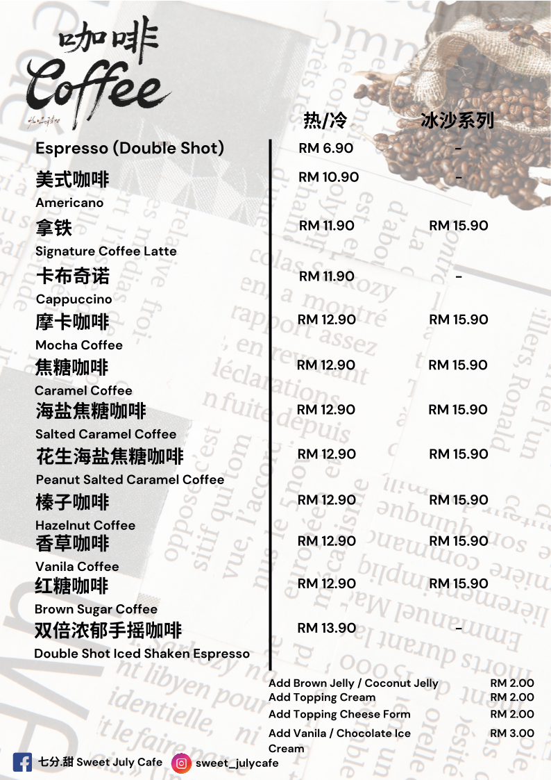 Welcome to Sweet July Cafe, an art cafe nestled in the charming Bentong, Pahang. This delightful eatery combines a cozy ambiance with a menu that delights the senses. Start your culinary journey with the Mango Salad with Smoked Duck, featuring juicy mango and tender duck drizzled in a zesty dressing for just MYR 18.90. For coffee lovers, their Iced Blended Coffees are a must-try; indulge in the Peanut Salted Caramel variant, a creamy blend that will elevate your day for MYR 15.90.